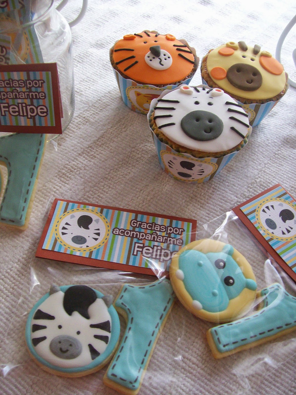 Para celebrar el primer añito de Felipe preparamos esta mesa llena de colores y gruñidos... torta, cupcakes y galletitas para los invitados que compartieron